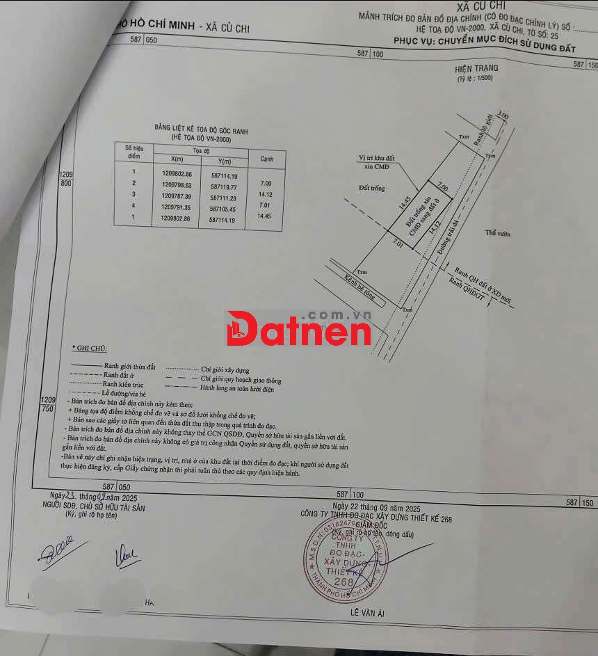 Đất thổ cư 1 xẹt 100m đ.Trần Thị Cẩm, Tân Phú Trung, Củ Chi. Cách Tỉnh Lộ 2 500m, cách mũi tàu Tỉnh Lộ 2 giao QL22 900m.
