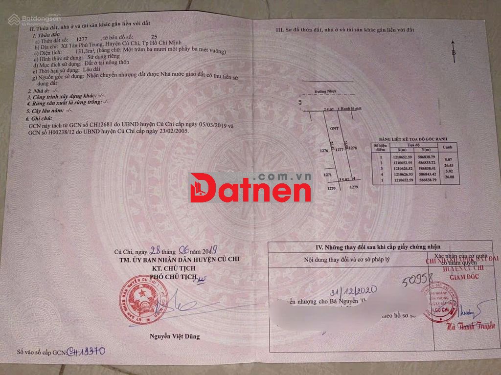 - Ngộp tiền vay ngân hàng bán nhanh lô đất ngay Uỷ ban xã Tân Phú Trung huyện Củ Chi, cách đường Hồ Văn Tắng rẽ vào 100m.