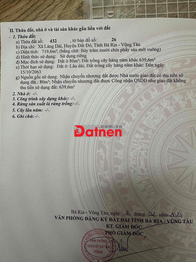 Quý vị đang xem nội dung tin rao "Chính chủ bán đất Láng Dài Đất Đỏ, có thổ cư". Mọi thông tin, nội dung liên quan tới tin rao này là do người đăng tin đăng tải và chịu trách nhiệm. Datnet.com.vn luôn cố gắng để các thông tin được hữu ích nhất cho quý vị tuy nhiên Datnet.com.vn không đảm bảo và không chịu trách nhiệm về bất kỳ thông tin, nội dung nào liên quan tới tin rao này.