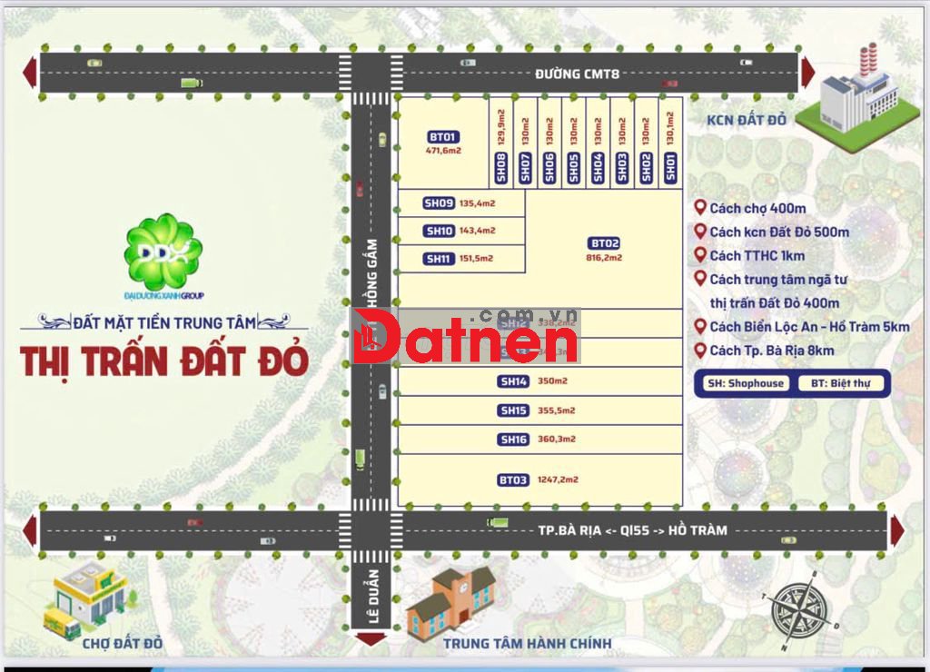 - Vị trí vàng : Toạ lạc 2 mặt tiền đường nhựa Cách Mạng Tháng 8 và Lê Thị Hồng Gấm. Trung Tâm Thị Trấn Đất Đỏ, Tp Hồ Chính Minh.