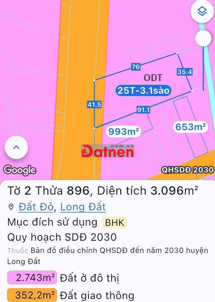 Đất gia đình cần bán gấp 3096m2 đường TL 52 thị trấn Đất Đỏ. 25 tỷ