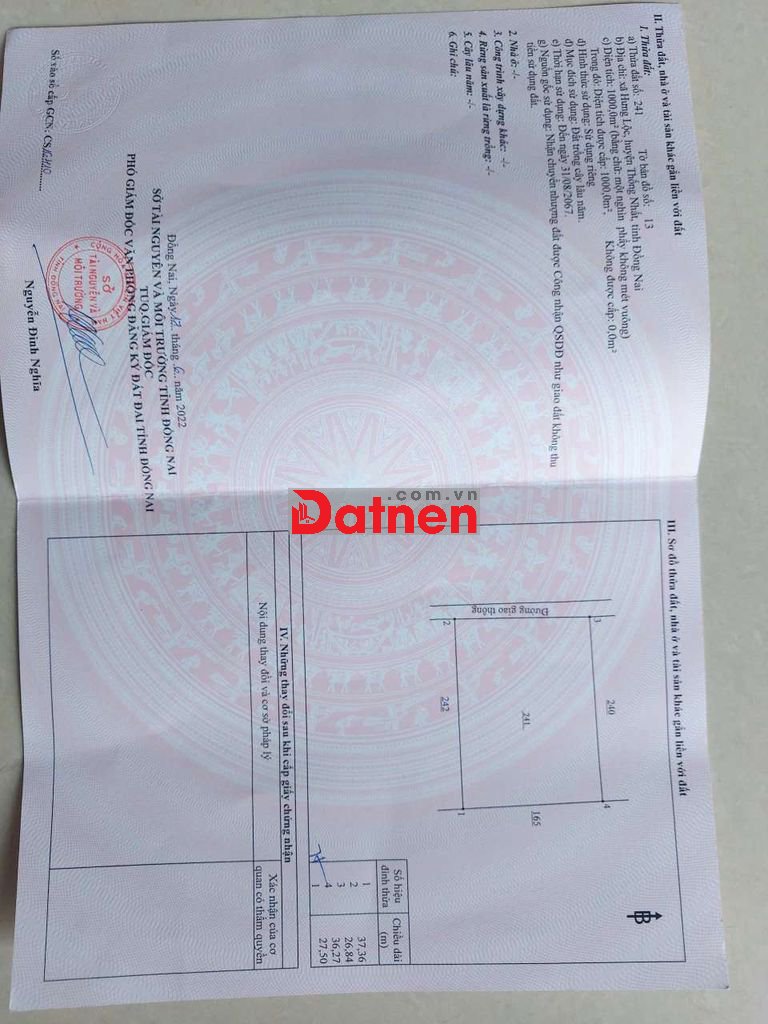 Mt đất bán chỉ 2t 26×37 giá đầutư x hưng lộc , thống nhất , đồng nai
