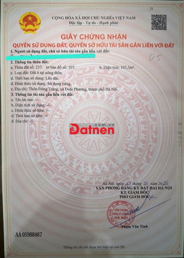 Giá trị: Khu vực dân đông, tiềm năng xây trọ cho cán bộ CNC thuê rất tốt hoặc mua đầu tư đón sóng trục Tây Thăng Long.