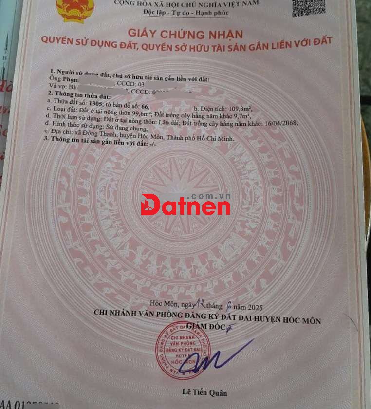 Chủ gửi bán lô Đất 1/ hẻm ôtô đường Đông Thạnh 1-4, Đông Thạnh ,Hóc Môn - Giáp Quận 12 (cách cầu Sa 500m).