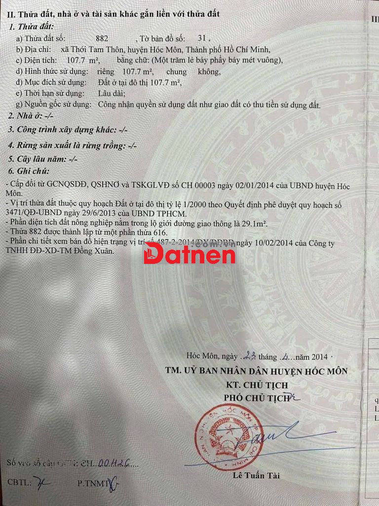 Đất 8x18 đường xe tải thông từ Huỳnh Thị Na qua Thới Tam Thôn 14