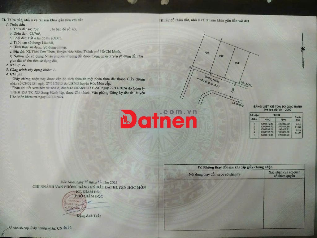Đất 7,3x13 đường nhựa 7m hai xẹc Thới Tam Thôn 18