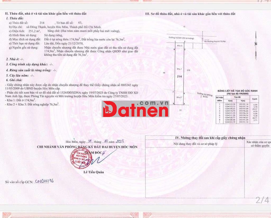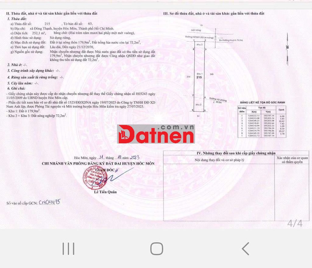 ĐẤT THỔ CƯ CÁCH ĐẶNG THÚC VỊNH 300M GIÁP Q12 KHU DÂN CƯ HIỆN HỮU TIỆN ÍCH XUNG QUANH ĐẦY ĐỦ .HAI LÔ CẠNH NHAU DT 1 LÔ 6×42 BÁN MỘT HOẶC CẢ HAI GIÁ 5,55/ LÔ .LỘ GIỚI XE TẢI THÔNG TƯƠNG LAI HAI MẠT TIỀN.THÍCH HỢP XÂY NHÀ ,BIỆT THỰ KHO XƯỞNG... VV. CHÍNH CHỦ .SỔ SẴN CÔNG CHỨNG NGAY THƯƠNG LƯỢNG CHO NGƯỜI THIỆN CHÍ( HH 2% ACE MÔI GIỚI)