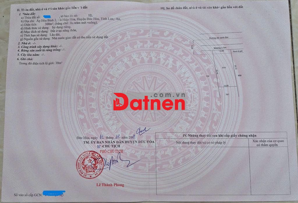 2. Đã chuyển thổ cư 300m2 ( 12x25.1m2) từ sổ 1100m2