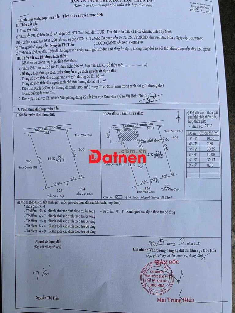 Đất bán . Dt 10 x 40 =400m2 8, có 396m2 thổ cư , sổ hồng riêng , đường đá xanh 4m , sau này mở rộng 10m , cách đường Vành Đai Trong 4 chỉ 160m , N2 vào 500m . Shr , tiện mua xây ở hay làm nhà trọ đều ok .