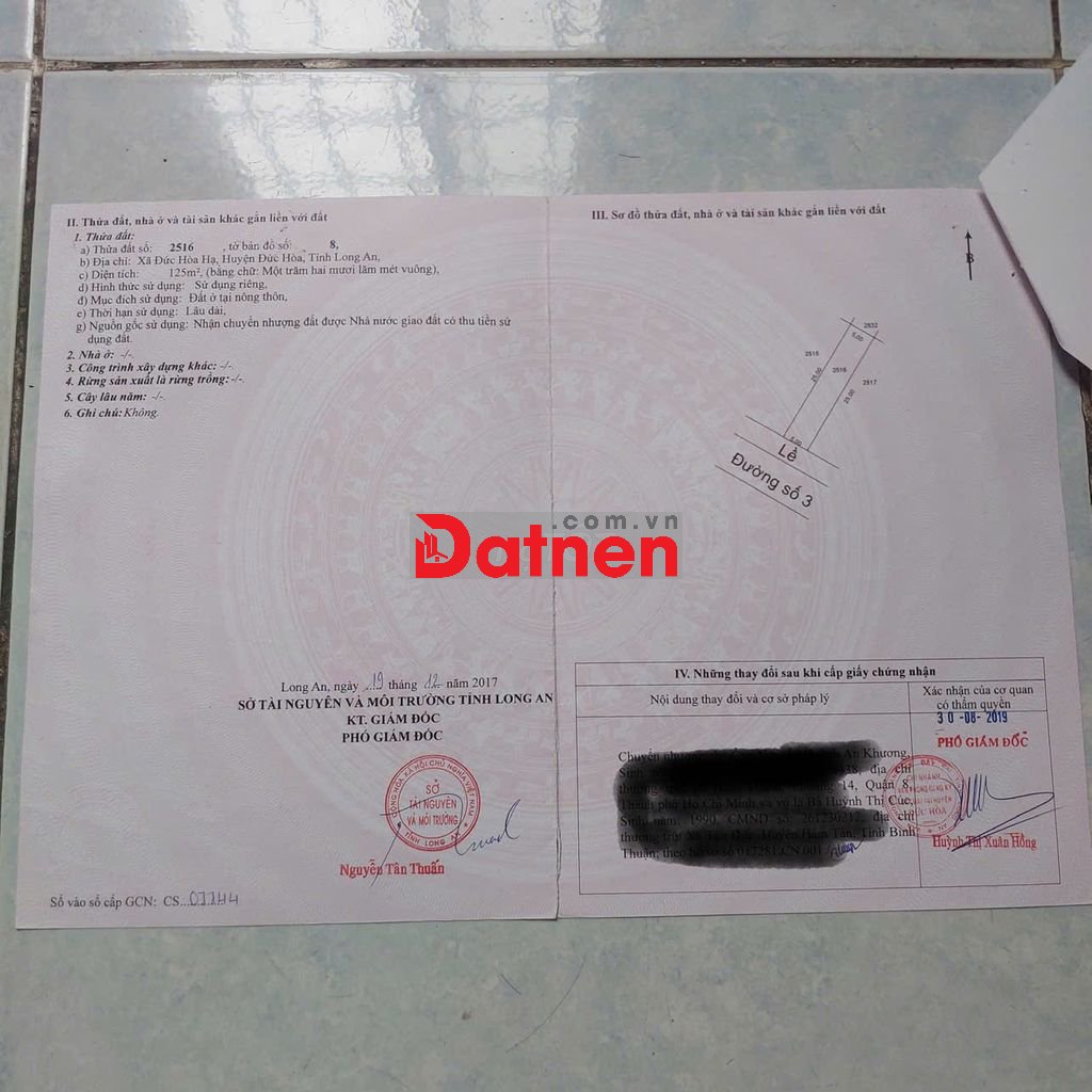 Bán đất thổ cư tại thửa đất 2516 , tờ bản đồ số 8, Xã Đức Hòa, Tây Ninh (địa chỉ cũ: Huyện Đức Hòa, Long An) với diện tích 125m², mặt tiền 5m, ngõ vào rộng 6m, rất thuận tiện cho việc xây dựng nhà ở hoặc kinh doanh.