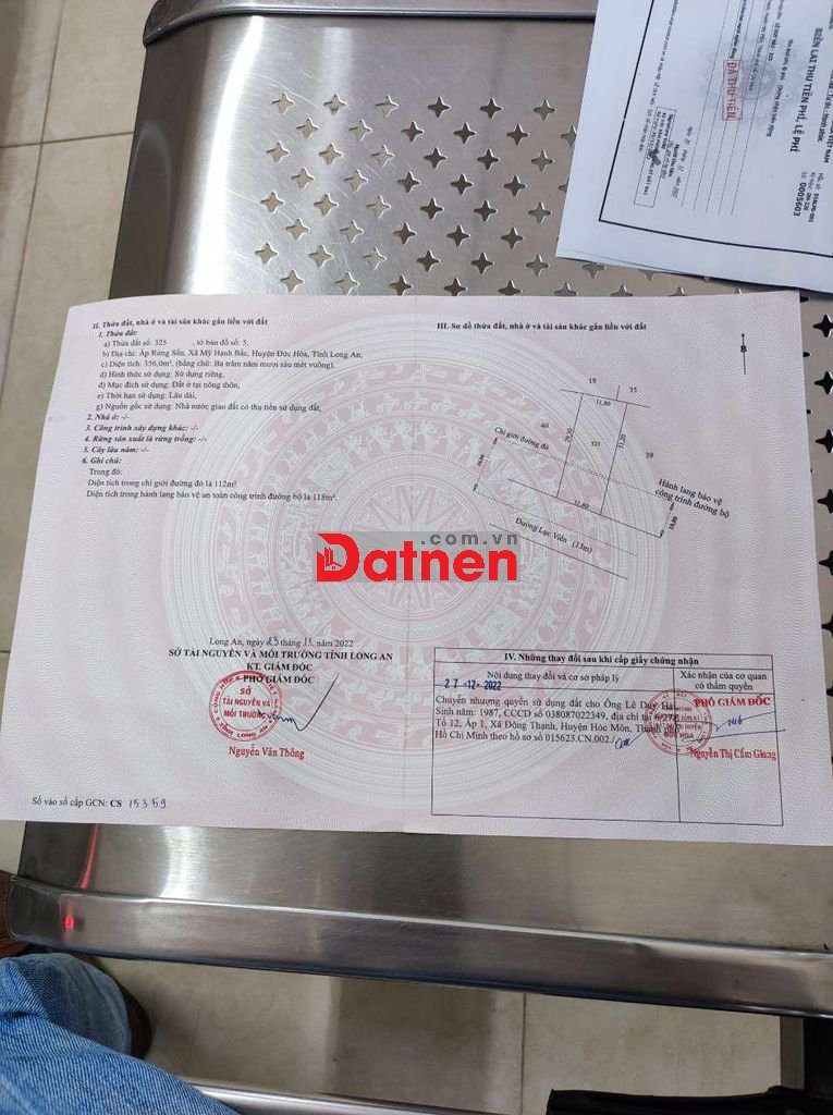 Đất 12x30 mặt tiền đường nhựa Lục Viên xã Mỹ Hạnh Bắc