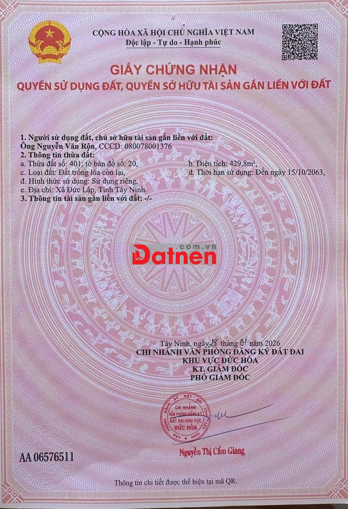 Chính chủ bán 3lô đất mà chỉ có 1tỷ250triệu,sổ hồng riêng,đường lệ thông ôtô chạy vô tư,đã có dân cư ở đông bao quanh nhiều khu cụm công nghiệp,gần chợ ủy ban,trường học.Mọi chi tiết liên hệ. DĐ ***