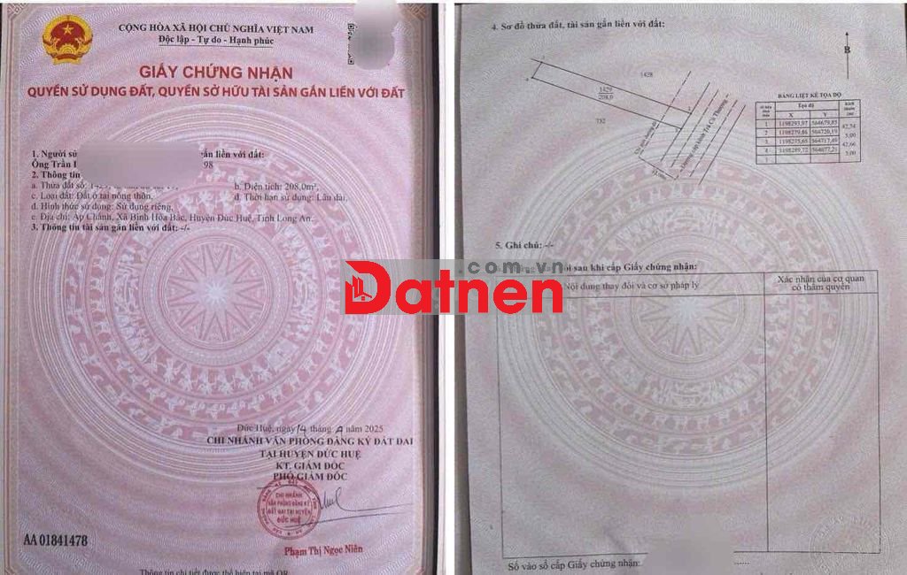 Đất có 100m thổ cư , vị trí gần chợ Suối Đá , UBND xã , trường học . Khu dân cư đông đúc