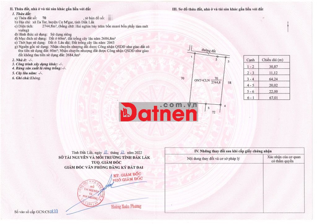 - DT: 45x70=3194m2 có 60m2 thổ cư