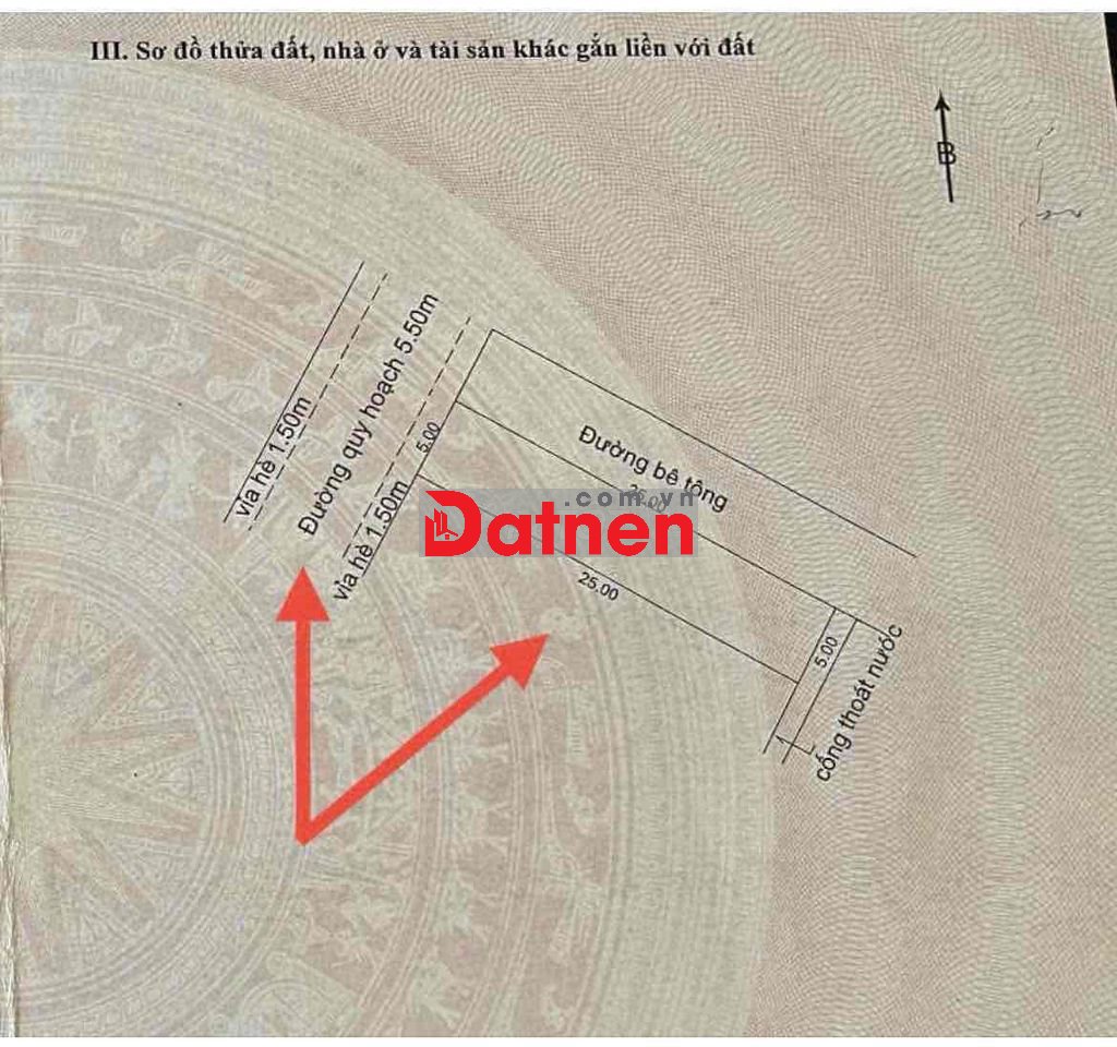 Diện tích 125m (5x25) vuông vứt, đường 5m5, hướng tây bắc