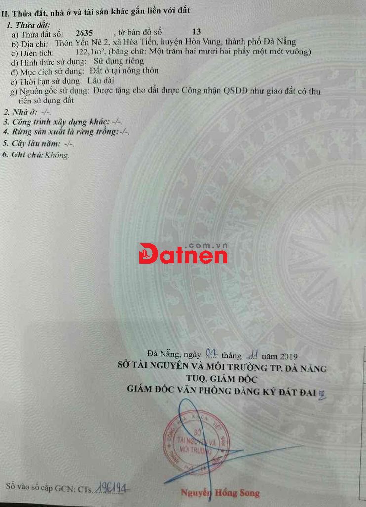 ĐẤT YẾN NÊ HOÀ TIẾN CẦN BÁN .