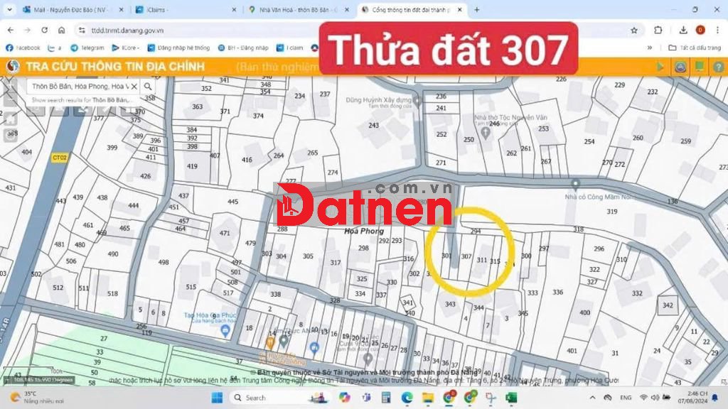 📍 Vị trí: Thửa 307, Tờ bản đồ số 34, Thôn Bồ Bản, X. Hòa Phong, Hòa Vang, Đà Nẵng