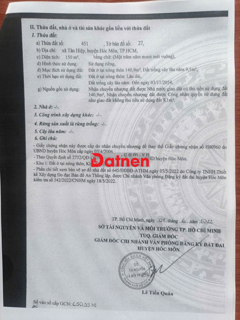 Đất 5x30 có 141m2 đất ở mặt tiền đường Liên xã Thị Trấn - Tân Hiệp