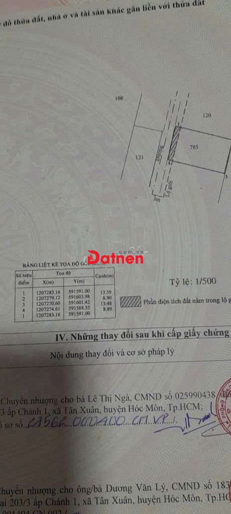 Đất thổ cư 120m2 đất ở, 9mx15m, hẻm 3m 1 xet Huỳnh Thị Mài, Tân Hiệp, Hóc Môn. Khu dân cư đông đúc.