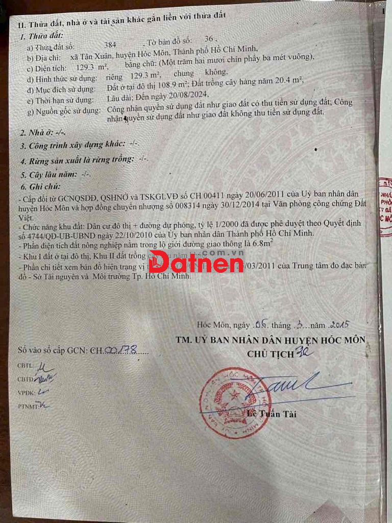 chủ cần bán lô đất shr xã Tân Xuân