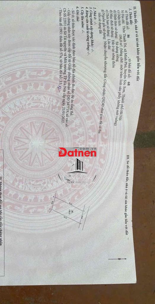 Quý vị đang xem nội dung tin rao "BÁN LÔ ĐẤT 106m SỔ ĐỎ FULL THỔ CƯ TẠI KIM ANH". Mọi thông tin, nội dung liên quan tới tin rao này là do người đăng tin đăng tải và chịu trách nhiệm. Datnet.com.vn luôn cố gắng để các thông tin được hữu ích nhất cho quý vị tuy nhiên Datnet.com.vn không đảm bảo và không chịu trách nhiệm về bất kỳ thông tin, nội dung nào liên quan tới tin rao này.