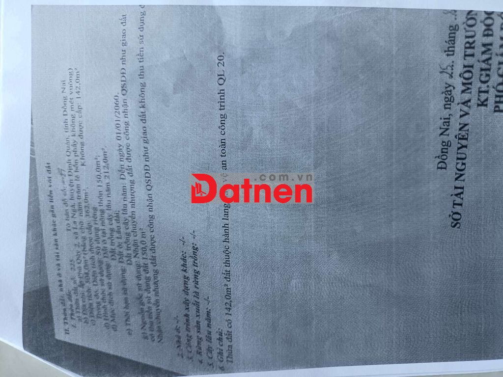 - Diện tích: 362m2 (thổ cư 150m2)