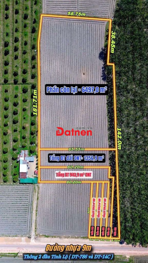 Đất 60x200m đường long chữ
