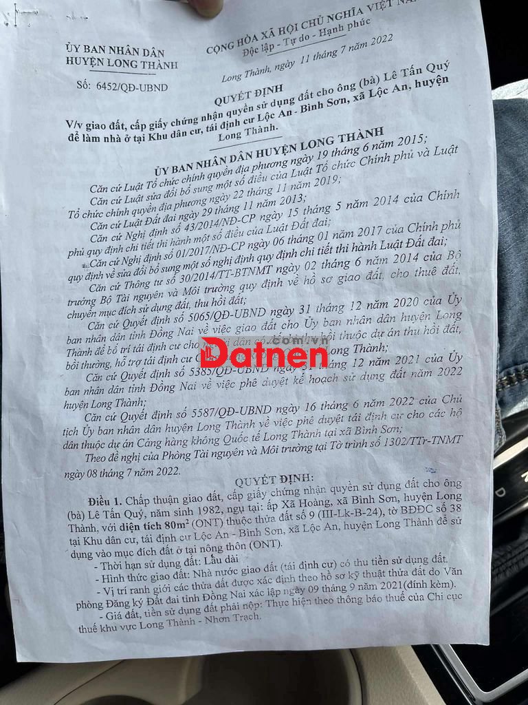 Chủ kẹt tiền cần ra gấp lô đất mặt tiền đường D3 26m tại khu tái định cư Sân bay Long Thành
