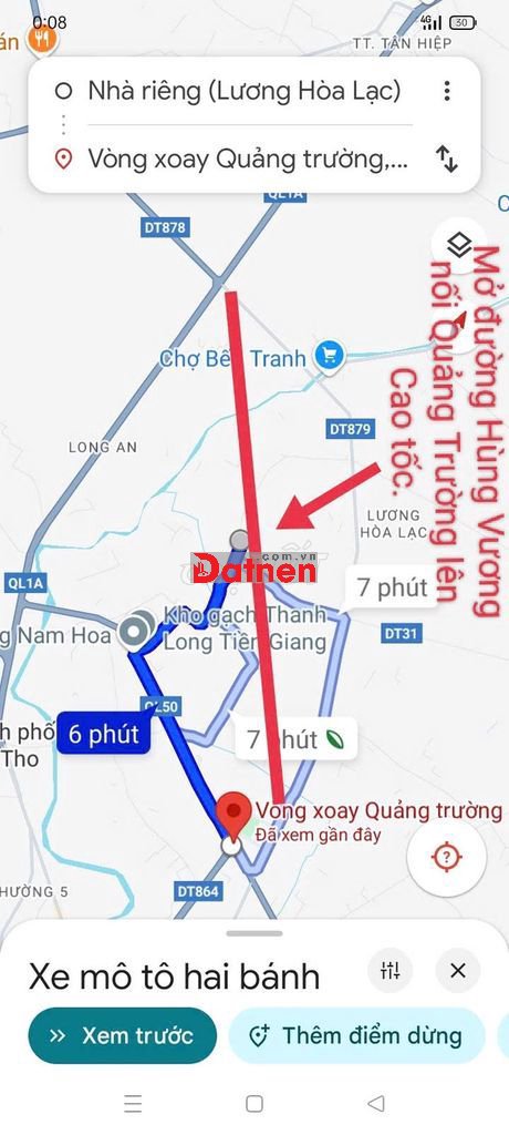 Bán đất hai mặt tiền nở hậu cách Mỹ Tho 5 phút