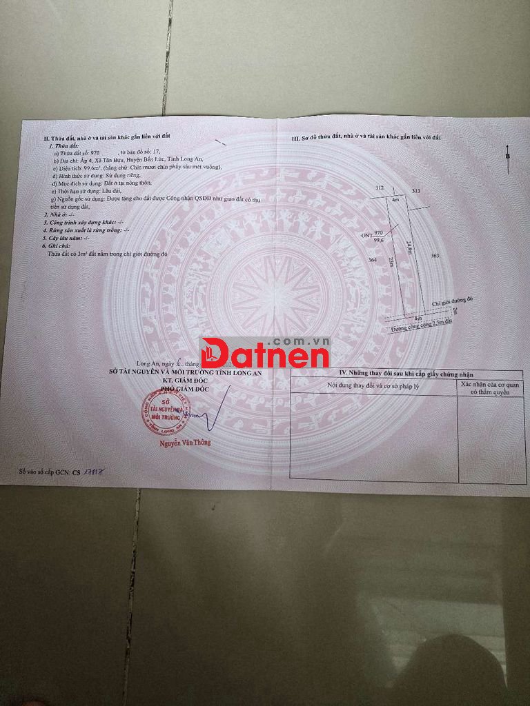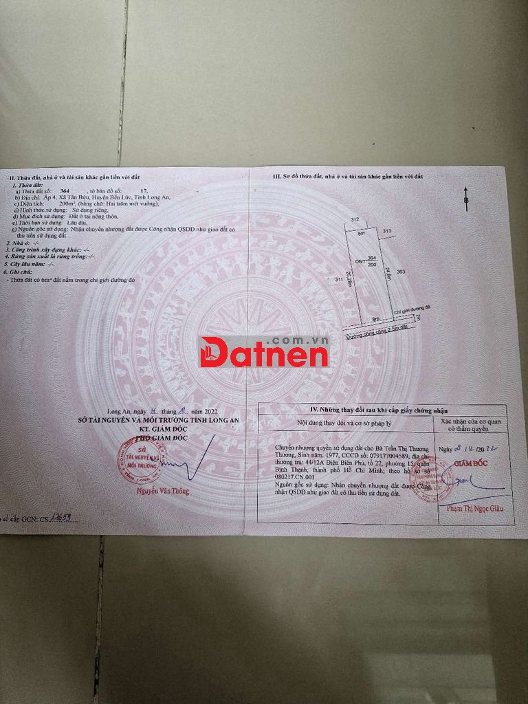 Đất ở lâu dài khu dân cư hiên hửu giấy tờ hơp lê.