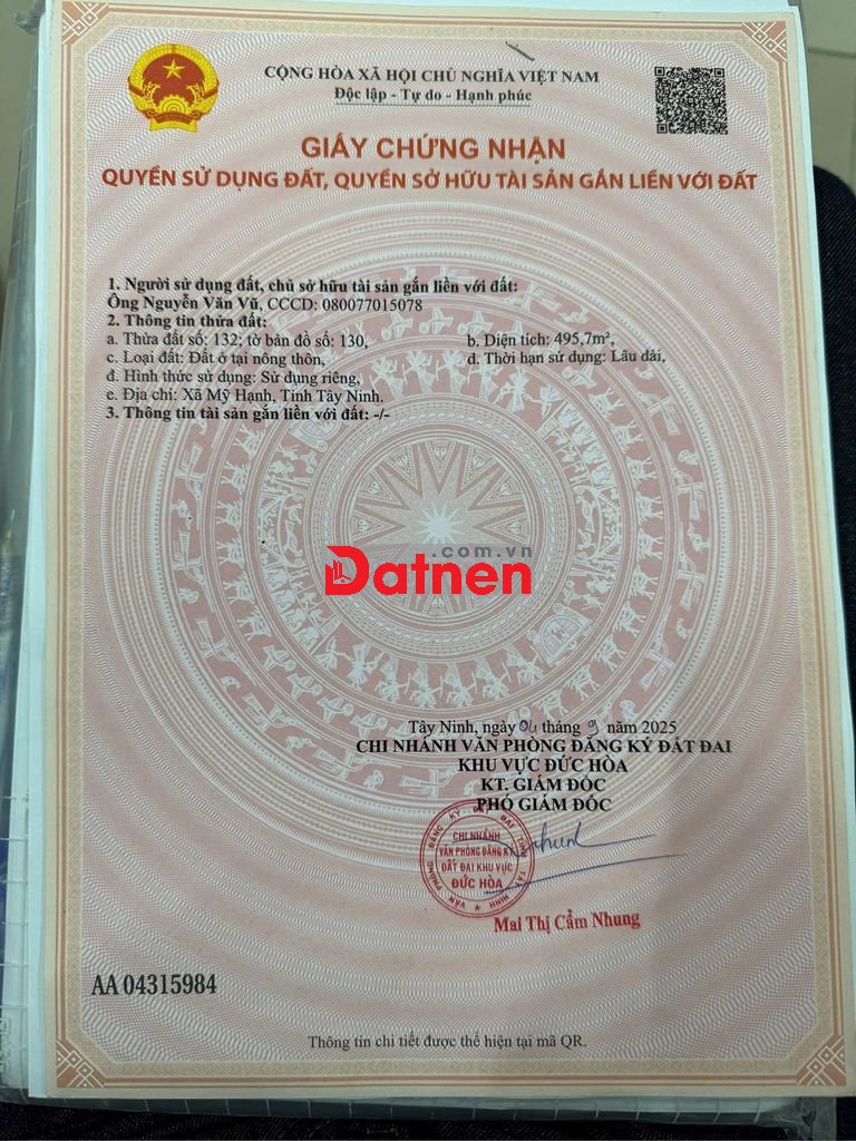 Kẹt bank Bán gấp lô đất thổ cư Mỹ Hạnh Nam Đức Hoà Long An (cũ) nay là Xã Mỹ Hạnh, Tây Ninh