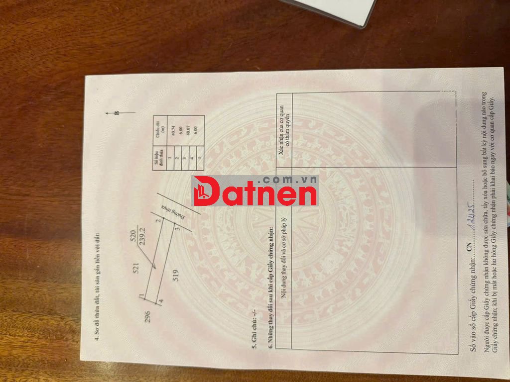 - Đất dt 6 × 40 = 239,2 m2 có 80 m2 thổ.