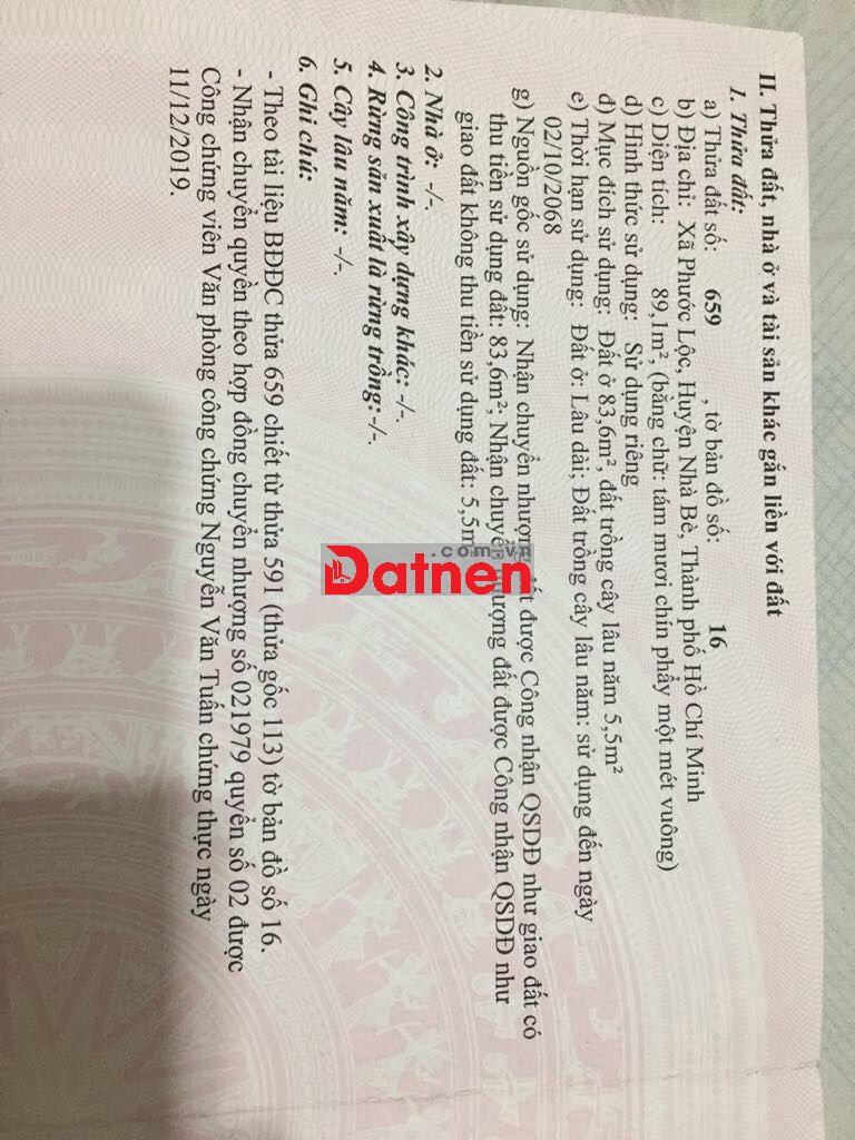 Chính chủ sổ hồng 90m2 đất ở, Xd tự do, Đg Đào Sư Tích, Phước Lộc, Nb.