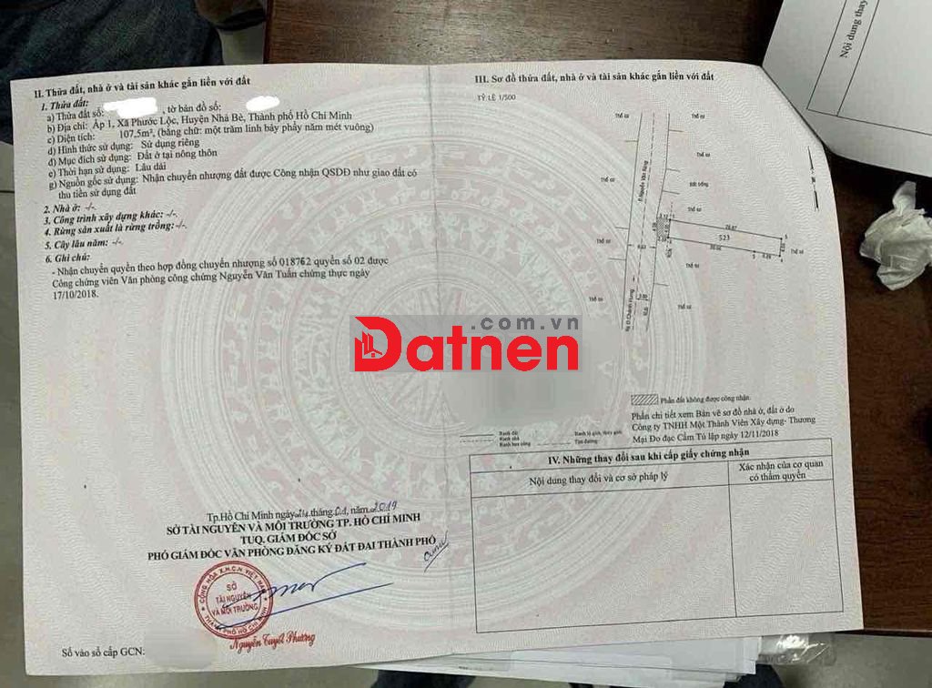 .Full thổ cư ,hẻm 6m rxe tải ở Ấp 1 Xã Phước Lộc huyện Nhà Bè cũ gần cầu Tắc Bến Rô đã làm bờ kè view đep