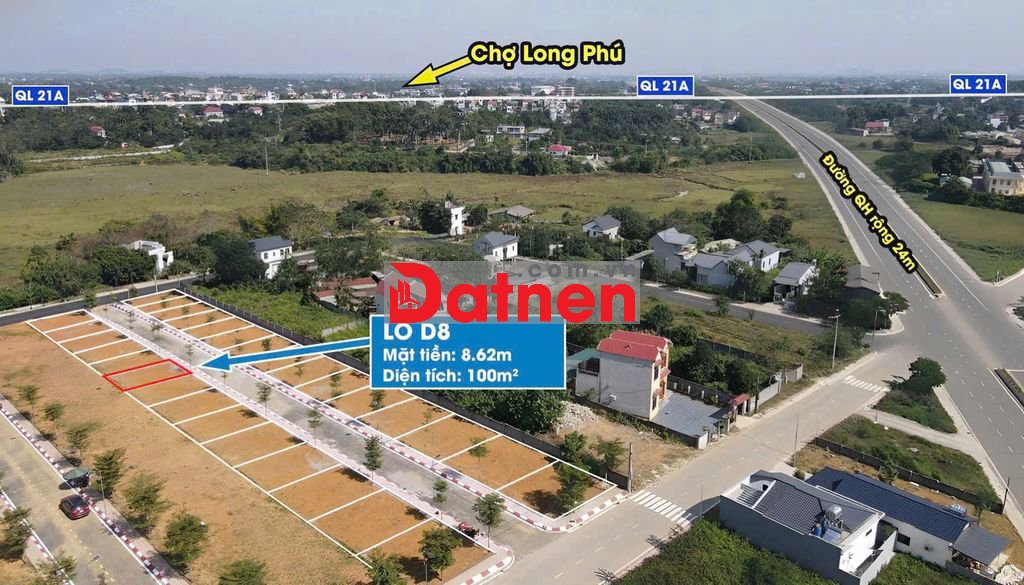 Diện tích 100m/lô mặt tiền rộng 8-9m full thổ cư