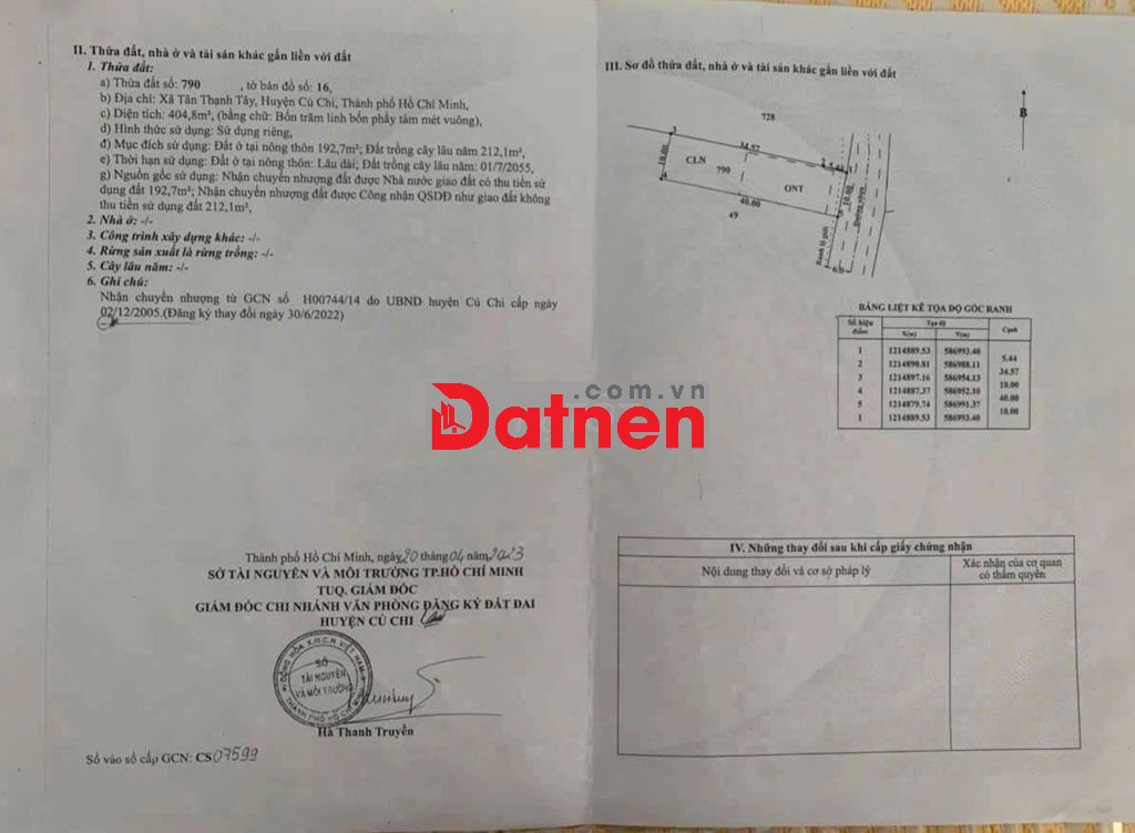 Bán đất mt đường nhựa xã tân thạnh tây dt=10×40m, có 194m thổ cư,
