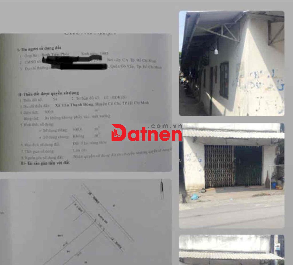 Cần bán đất mặt tiền đường 129 xã Tân Thạnh Đông Củ Chi, có 15 phòng trọ đang cho thuê kín phòng, thu nhập 10 triệu/1 tháng. Ace môi giới hợp tác nhé, hoa hồng 3%
