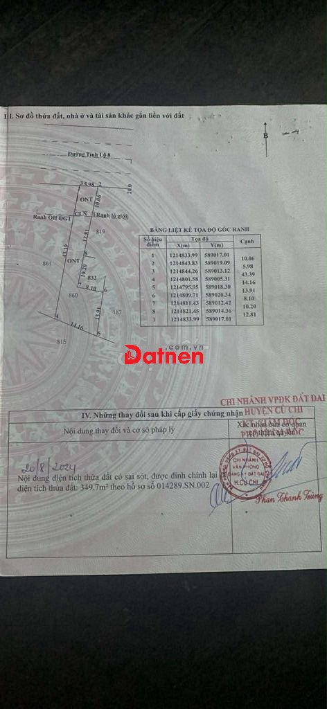 📐 Diện tích: 347.7m² (full thổ cư/ONT + đất trồng cây lâu năm)