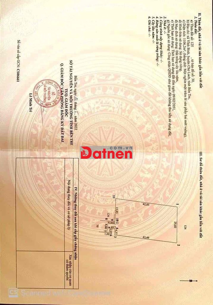 Bán Đất mặt tiền quốc lộ 57 thuộc xã Vĩnh Bình Chợ Lách Bến Tre (Nay Thuộc xã Phú Phụng, Tỉnh Vĩnh Long), Kế Tiệm Vàng Hoàng Lộc, Uỷ Ban nay là Trung Tâm Vĩnh Bình, Đối diện Chợ Vĩnh Bình