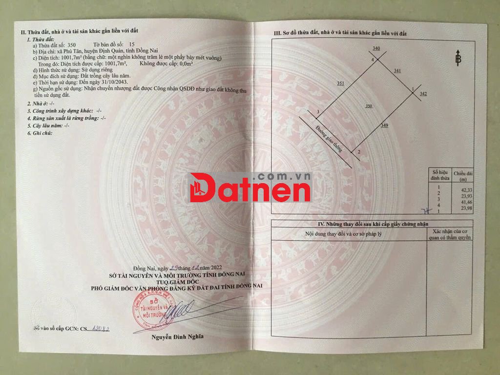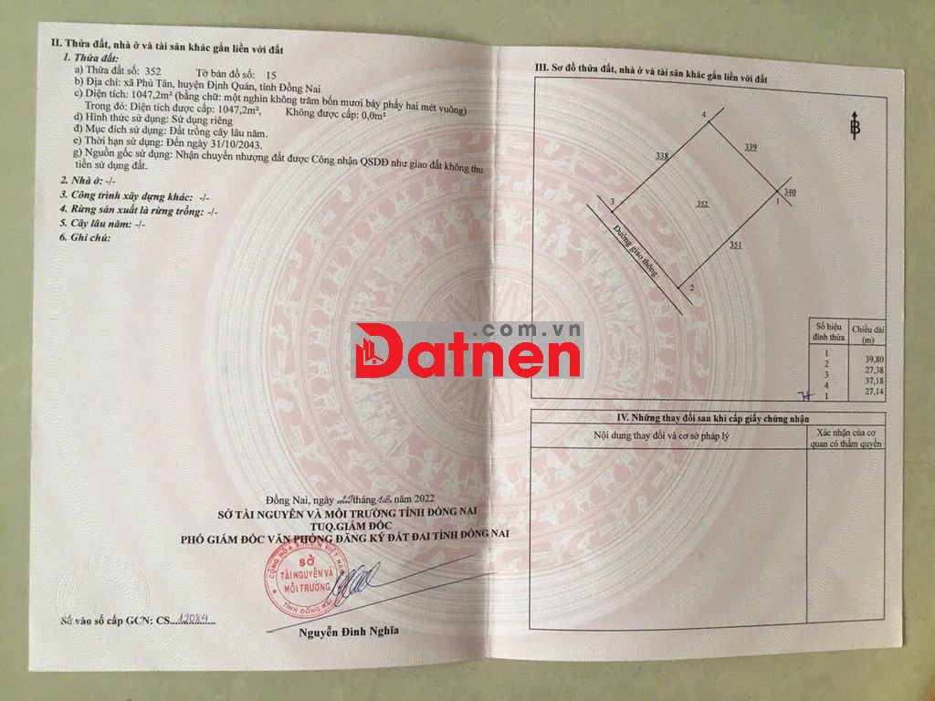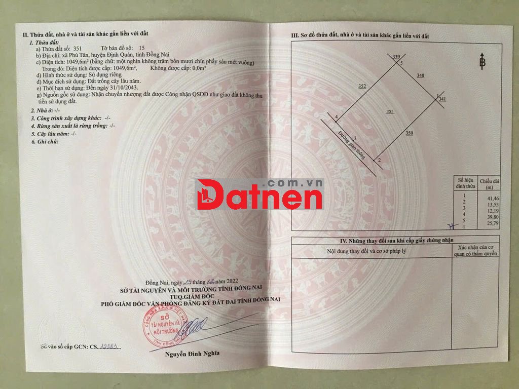 Đất trồng cây lâu năm, sổ hồng riêng, pháp lý rõ ràng