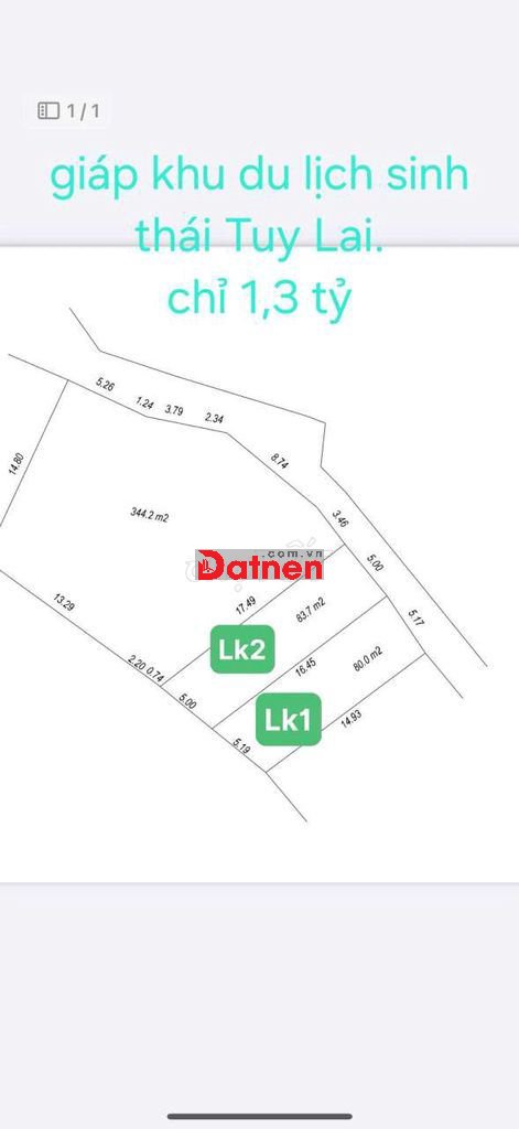 Bán đất thổ cư ở Tuy Lai giáp khu du lịch sinh thái Tuy lai.