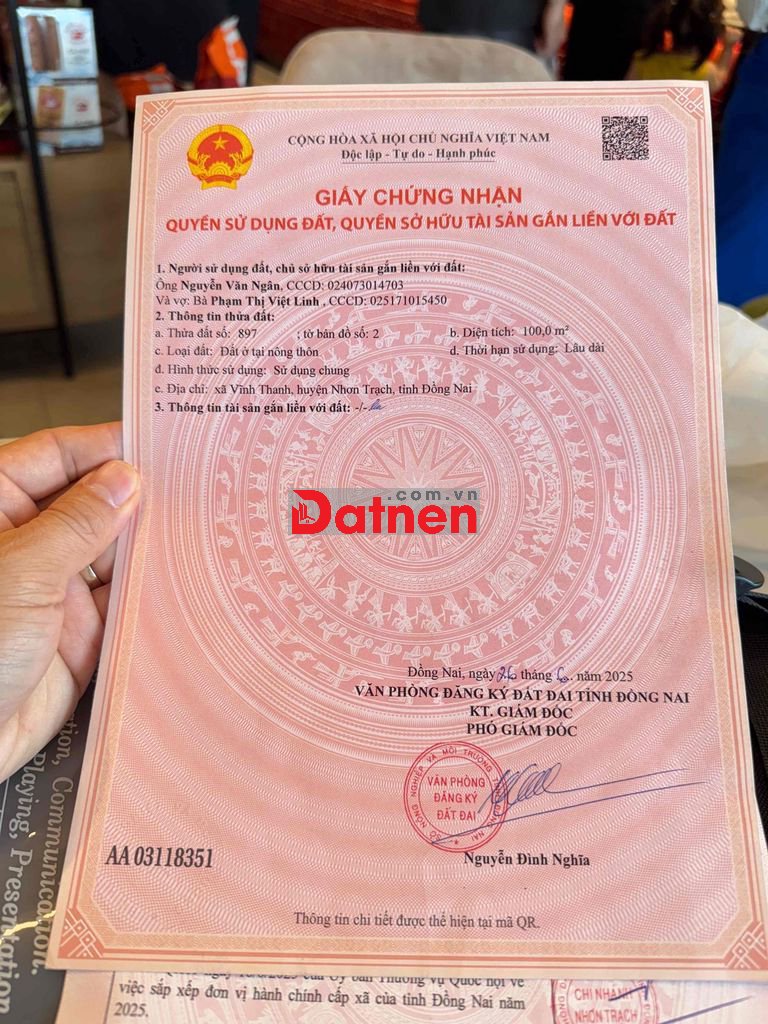 Chính chủ cần bán 100m đất Vĩnh Thanh vuông vứt 5x20 đường oto vào tận nơi. Khu vực có dân cư . Gần nhà thờ chợ. Khuyết điểm hơi gần mộ nên giá rất rẻ anh chị em quan tâm lh nha