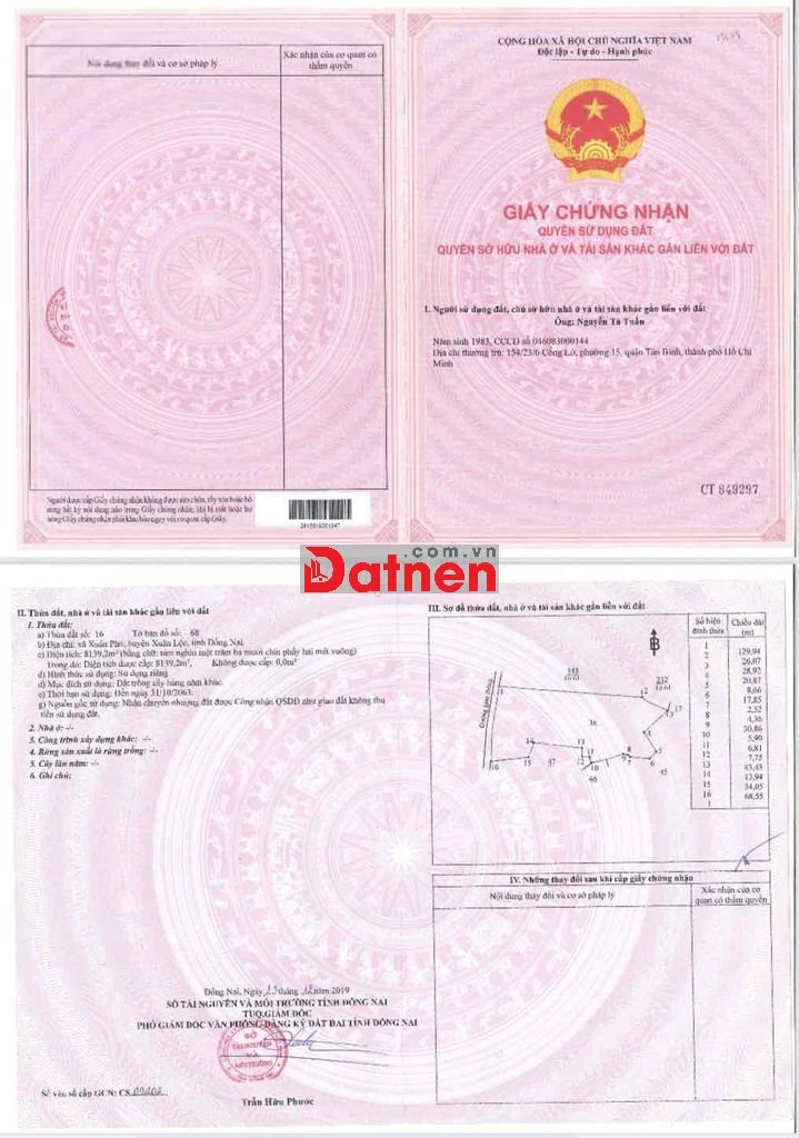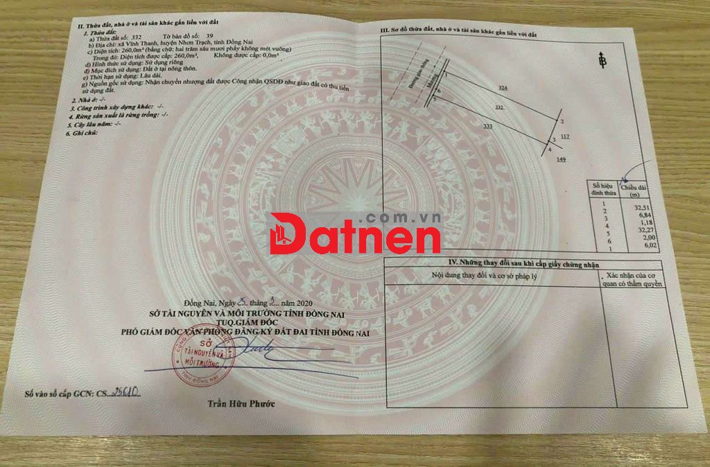 Bán Đất Xã Vĩnh Thanh Huyện Nhơn Trạch Tỉnh Đồng Nai .