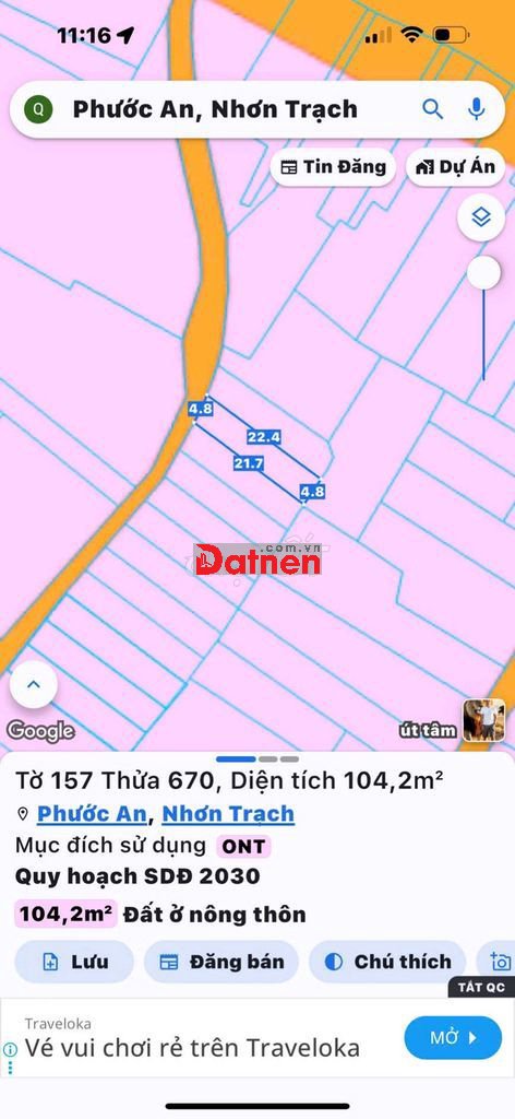Nhanh tay sở hữu lô đất diện tích 104m2 tại đường Hùng Vương, xã Vĩnh Thanh, Nhơn Trạch, Đồng Nai.