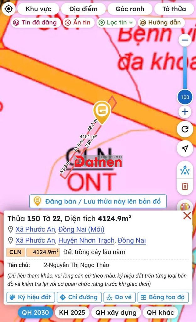 Quý vị đang xem nội dung tin rao "CHÍNH CHỦ BÁN 4.124 m² - XÃ PHƯỚC AN – NHƠN TRẠCH – ĐỒNG N". Mọi thông tin, nội dung liên quan tới tin rao này là do người đăng tin đăng tải và chịu trách nhiệm. Datnet.com.vn luôn cố gắng để các thông tin được hữu ích nhất cho quý vị tuy nhiên Datnet.com.vn không đảm bảo và không chịu trách nhiệm về bất kỳ thông tin, nội dung nào liên quan tới tin rao này.