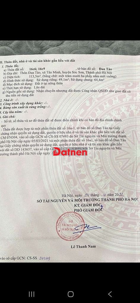 Quý vị đang xem nội dung tin rao "1,2 tỷ lô đất đẹp 50 m ở thôn Đan Tảo Sóc Sơn giá cực tốt để đầu tư". Mọi thông tin, nội dung liên quan tới tin rao này là do người đăng tin đăng tải và chịu trách nhiệm. Datnet.com.vn luôn cố gắng để các thông tin được hữu ích nhất cho quý vị tuy nhiên Datnet.com.vn không đảm bảo và không chịu trách nhiệm về bất kỳ thông tin, nội dung nào liên quan tới tin rao này.