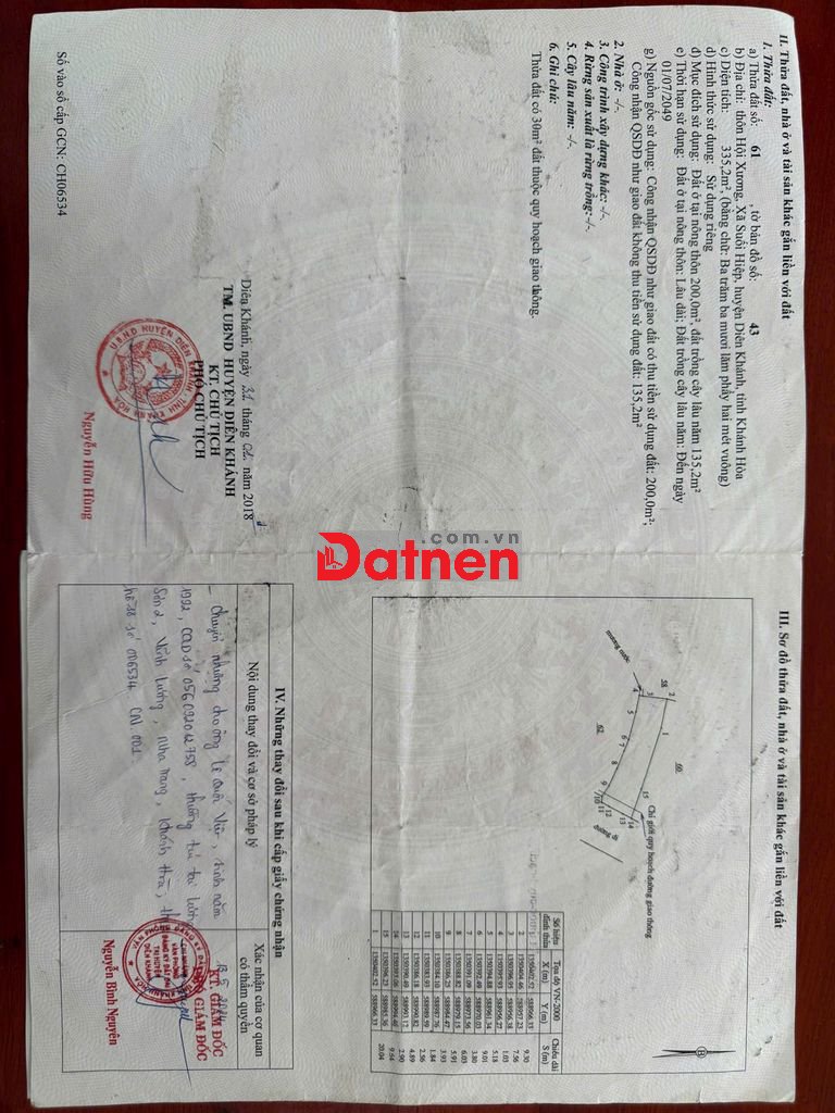 Trong đó 200m² thổ cư, phần còn lại đất trồng cây lâu năm rất thuận tiện lên thổ sau này.