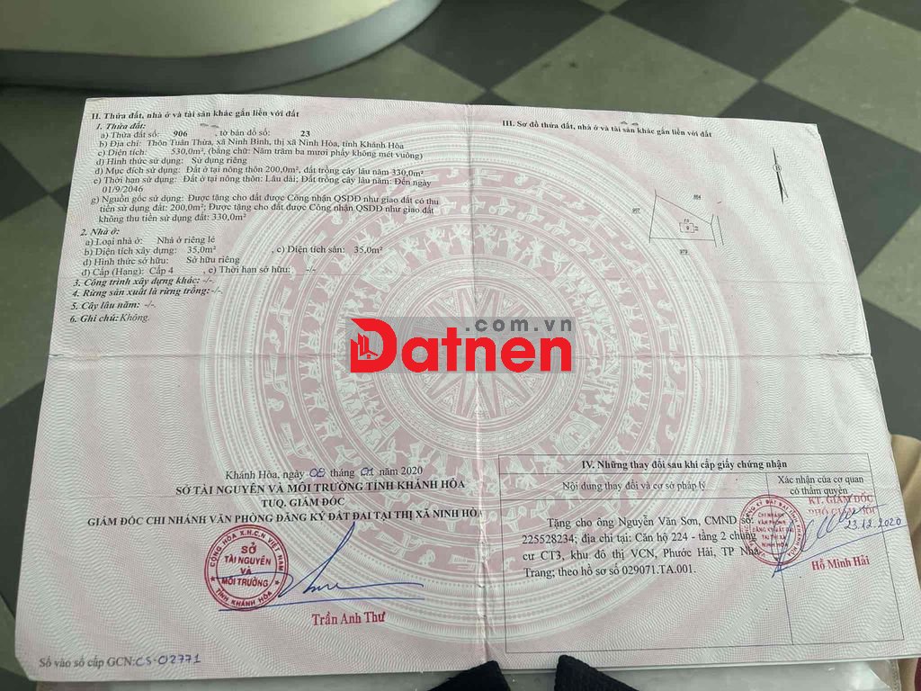 CẦN BÁN NHANH LÔ ĐÂT NỞ HẬU TÂN ĐỊNH NINH HOÀ