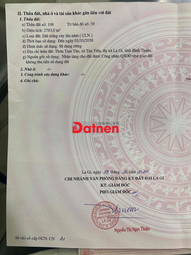 Diện tích: 2783m2, đường trước đất 10m lộ giới 20m