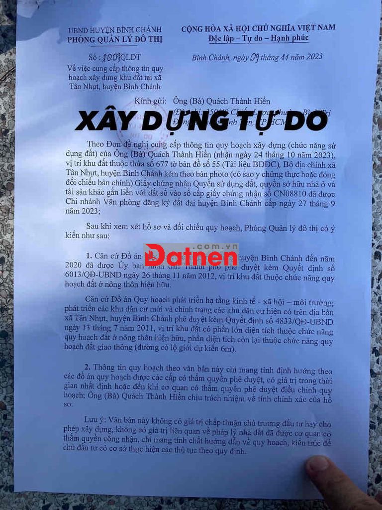 ✍️Quy Hoạch Dân Cư Hiện Hữu ( cấp phép xây dựng và Hoàn công) ĐẶT BIỆT ĐIỆN NƯỚC (Nhà Nước đã đầu tư đầy đủ về xin là có đồng hồ)
